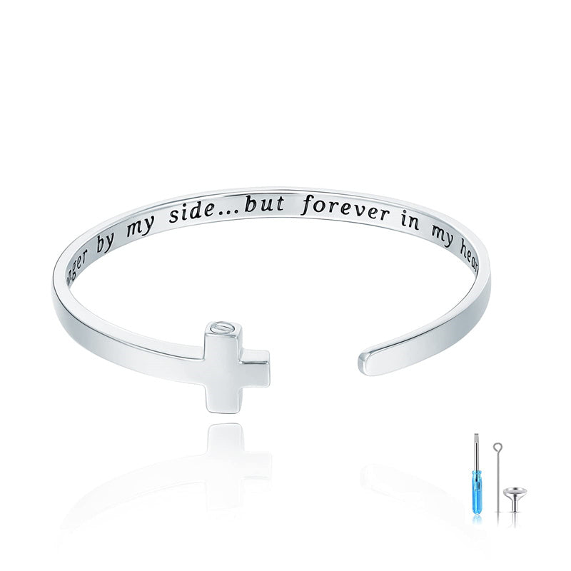 925 Sterling Silver Cross Urn Bracelet for Ashes Adjustable Cross Cuff Bangle Memorial