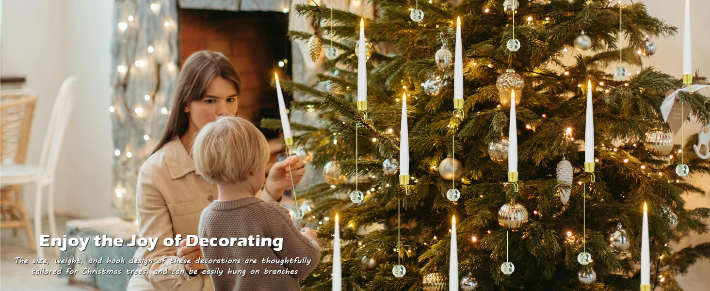 🎉EASY TO USE: Each hook is made of high quality material, with the perfect structure and appropriate size, allowing it to easily hang on branches of various thicknesses. Simply place the led candle on the hook, and the candlestick will stay firmly on the hook without tipping over or sliding off. When the holiday season ends or you need to adjust the Christmas decor position, you can easily move them without pulling forcefully or worrying about damaging the branches or hooks.