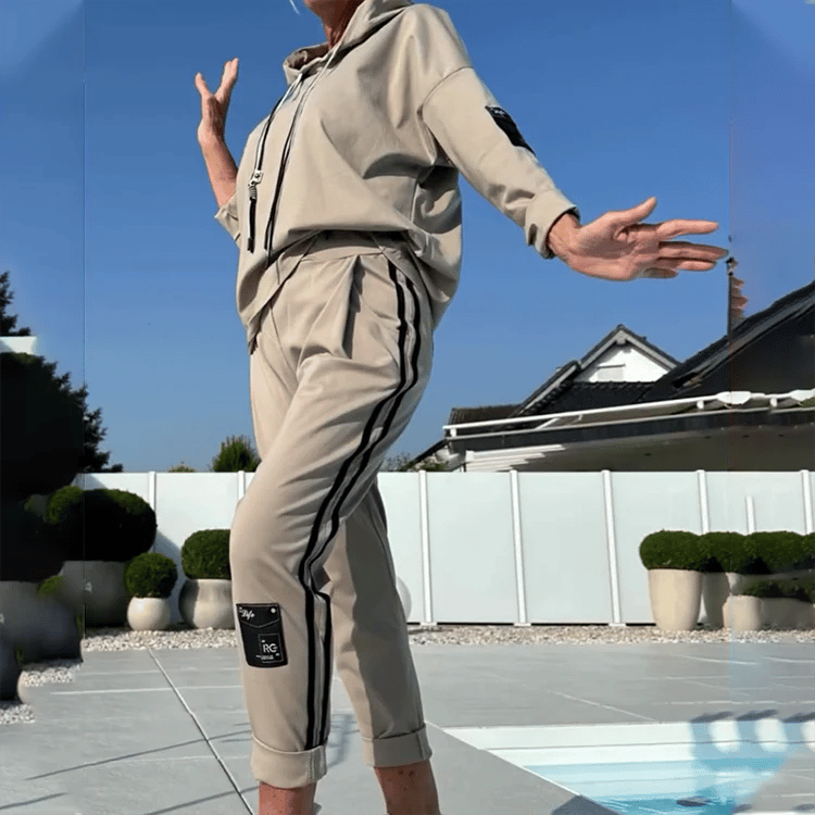 FLATTERING CUT: Expertly tailored with refined cutting and practical pockets, this set enhances natural body lines while providing a relaxed yet stylish fit. It creates a balanced silhouette that flatters various body shapes, making you feel confident and put-together.