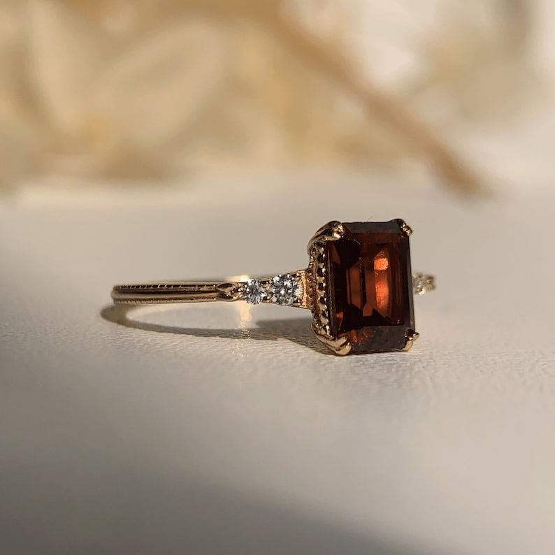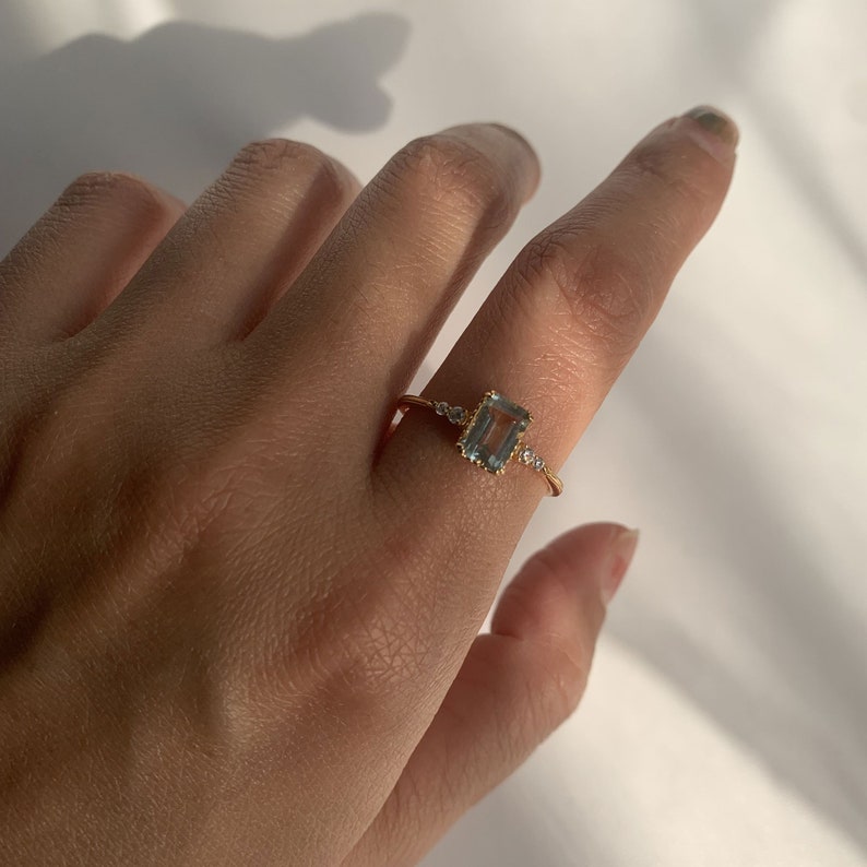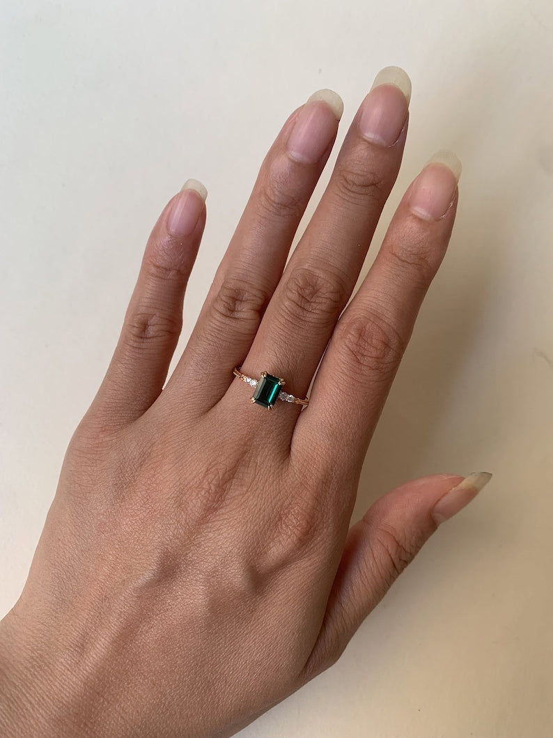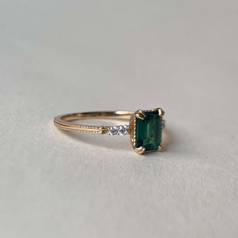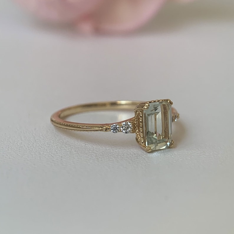 Natural Green Emerald Cut Prasiolite RingsAnniversary Birthday Gift For Her