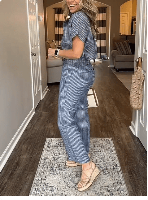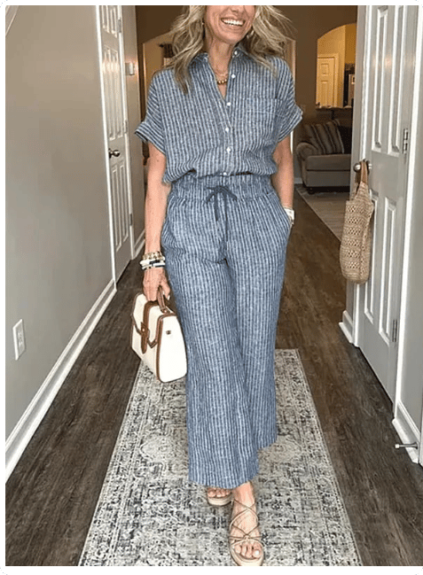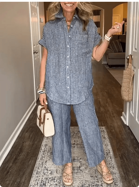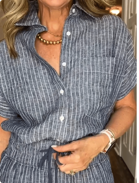 NEW💥 Classic striped linen cotton shirt set with pockets
