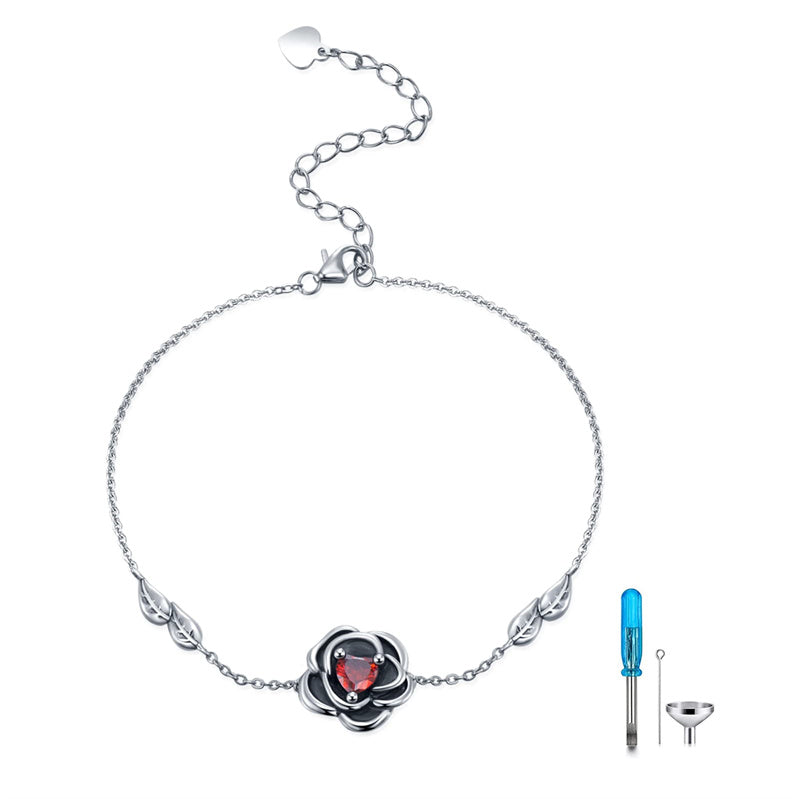 Rose Urn Bracelet 925 Sterling Silver Flower Cremation Urn Bracelet for Ashes Memorial Jewelry Gift for Women