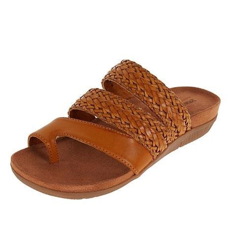 Simply, slip them on and snug your feet in place around the toe clasp for enhanced support.