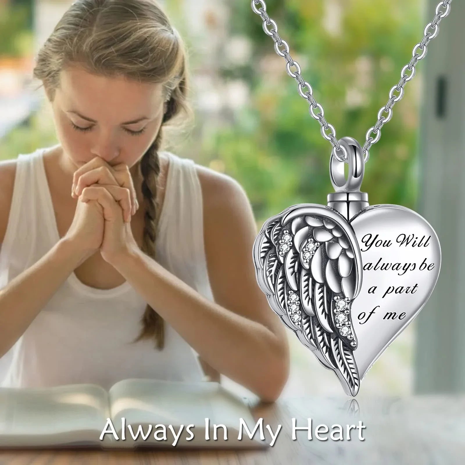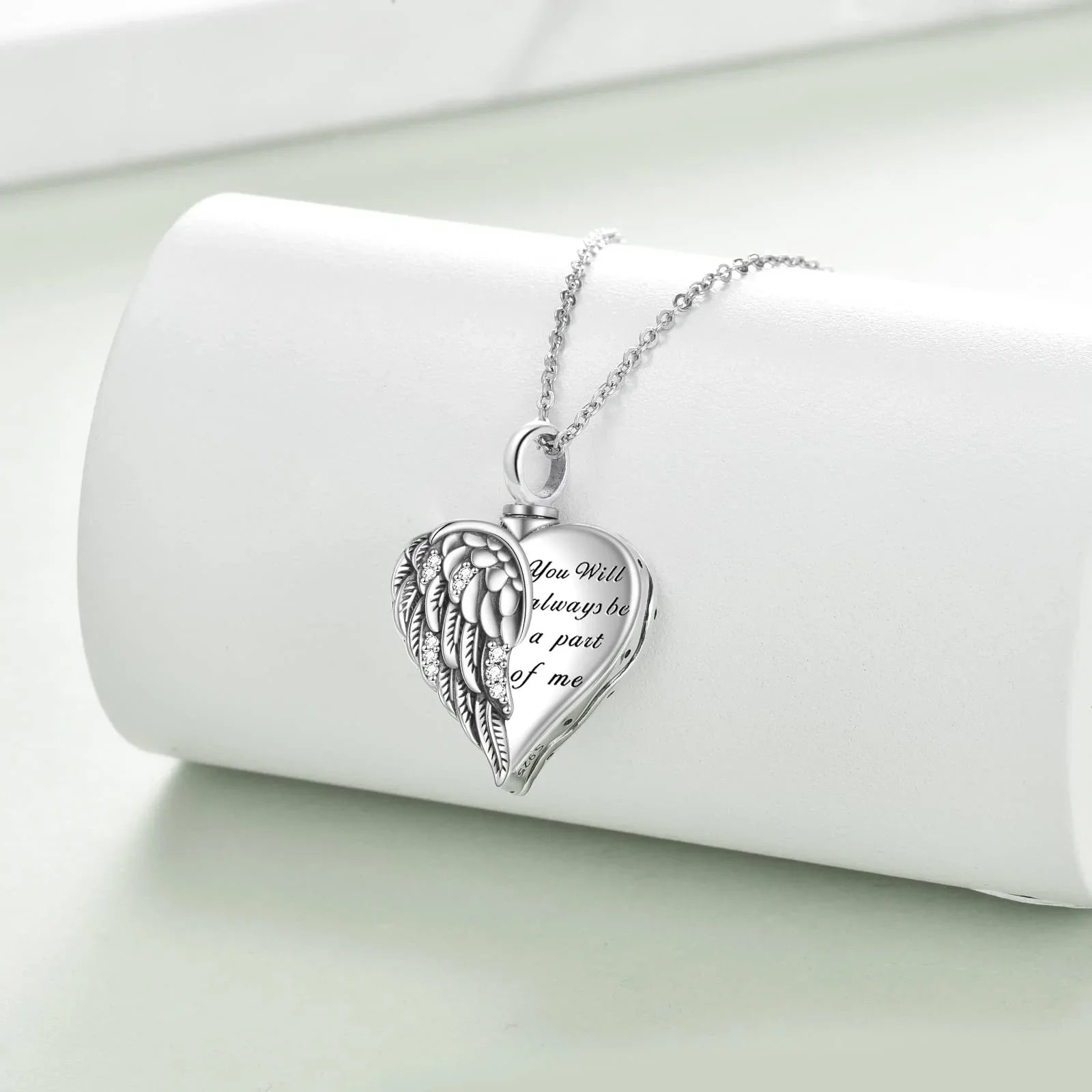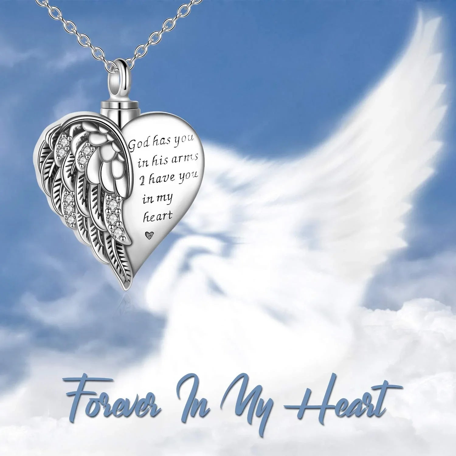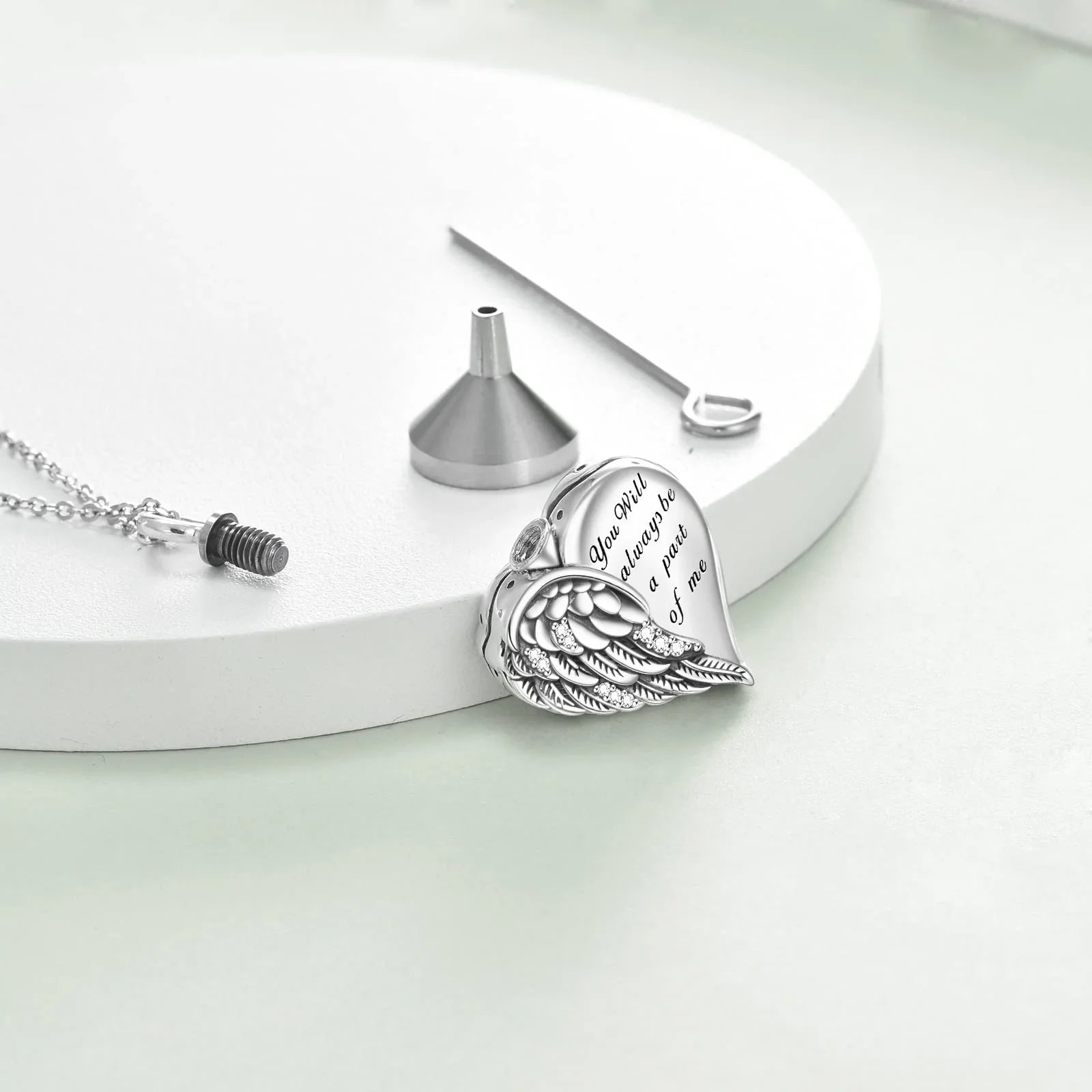 Sterling Silver Guardian Angel Wings Urn Necklaces for Ashes Cremation Memory Jewelry for Women Men