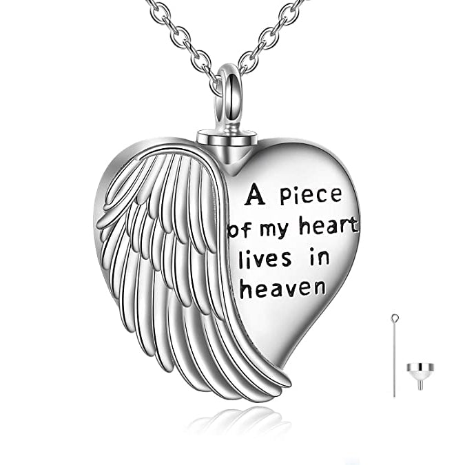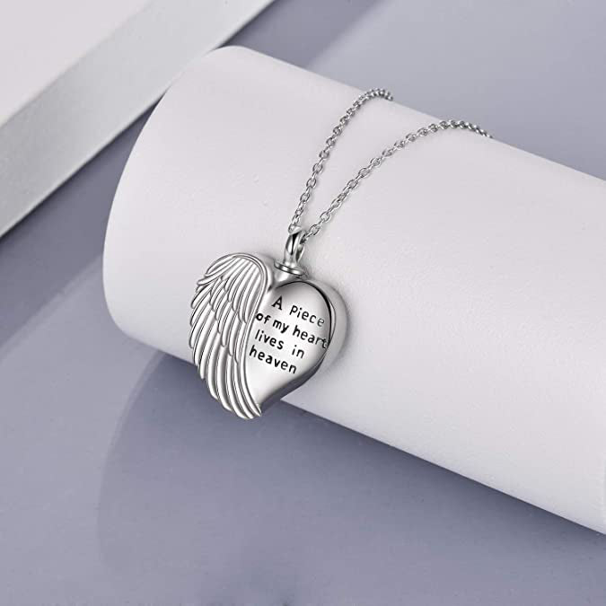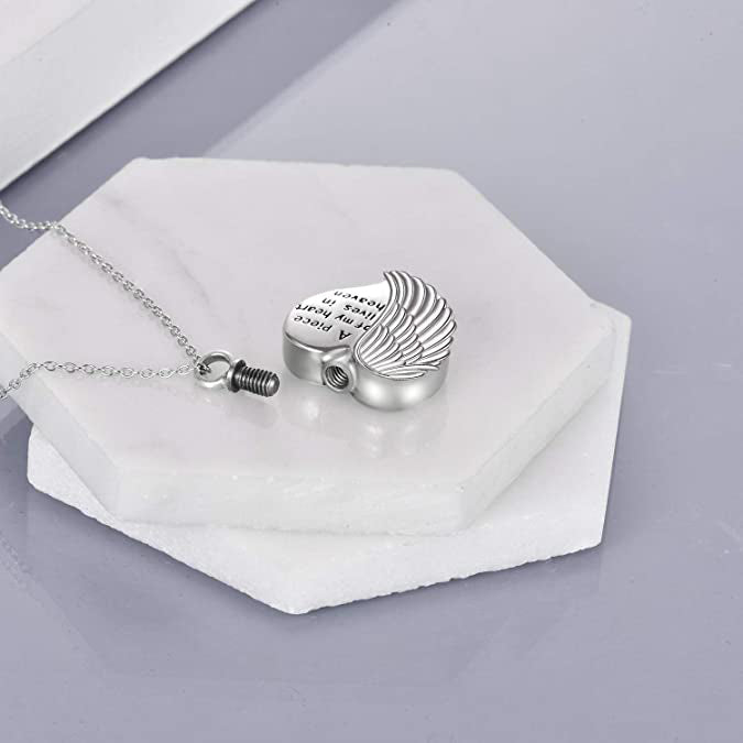 💖Design: Angel Wings Cremation jewelry necklace, screws from the top of urn, allowing you to place a small amount of ashes in it. If you don't want/have ashes, you can also pour perfume in or add crushed flowers, dirt, hair, sand, and notepaper.