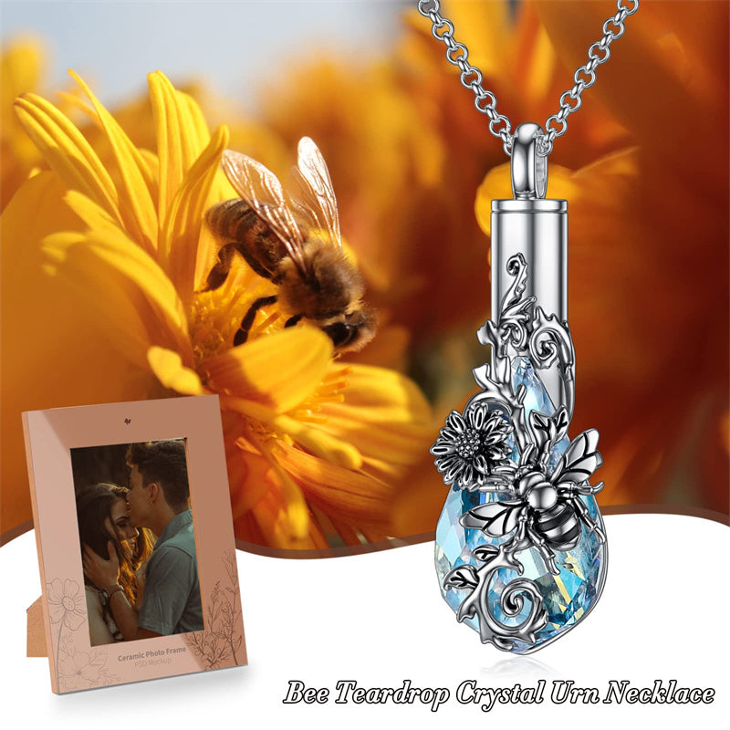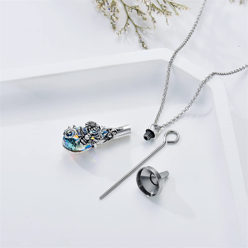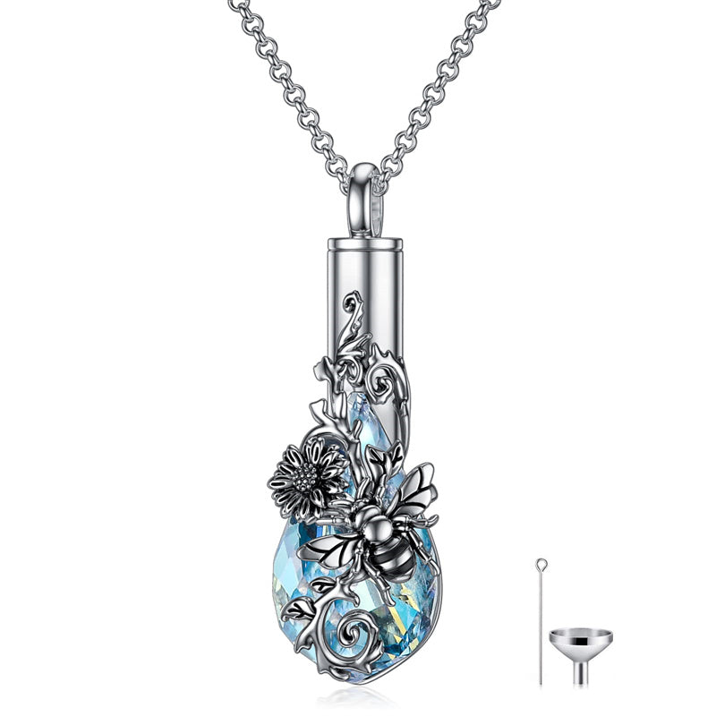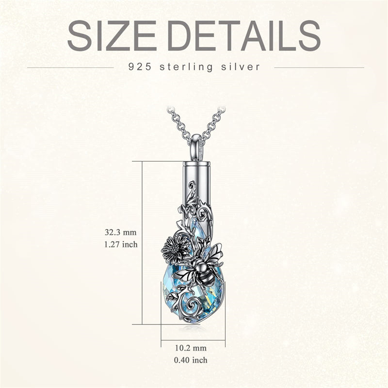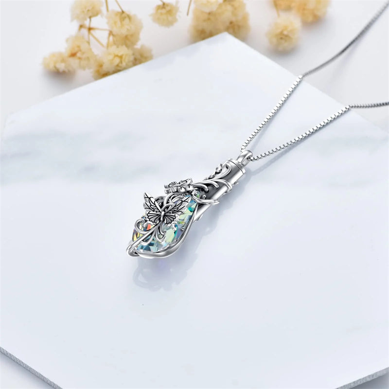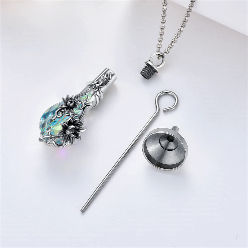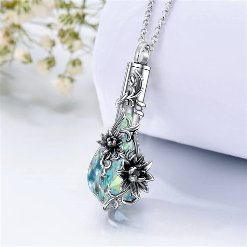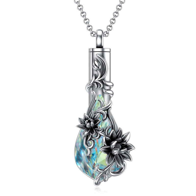 Sterling Silver Rose/Butterfly/Sunflower Flower Cremation Necklace For Ashes,Crystal Urn Necklace For Ashes For Women Memorial Jewelry