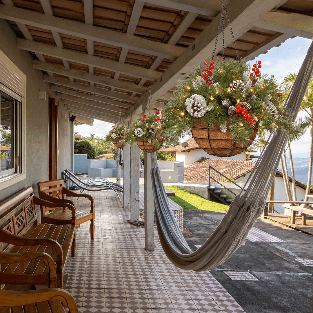 - EASY MAINTENANCE: No need to water or clean up needles, this hanging pine basket will last many holidays with it's time-tested, fire-resistant, and non-allergenic needles.